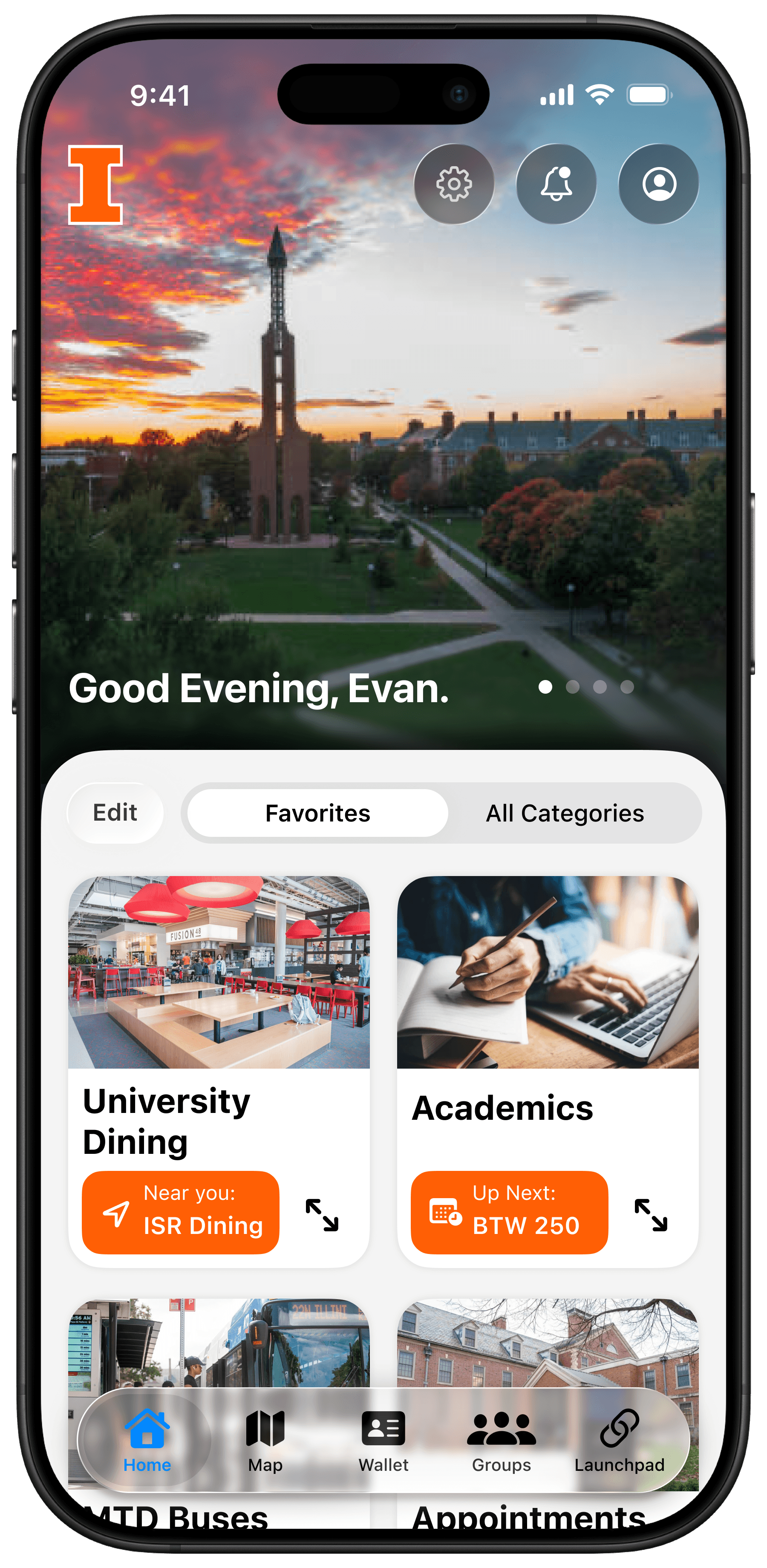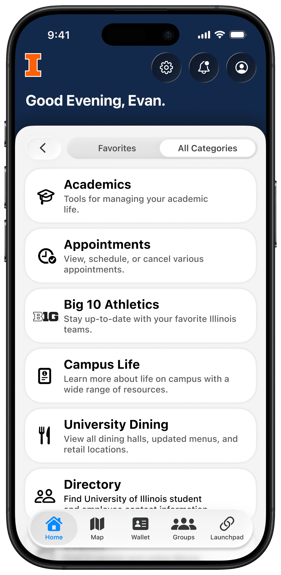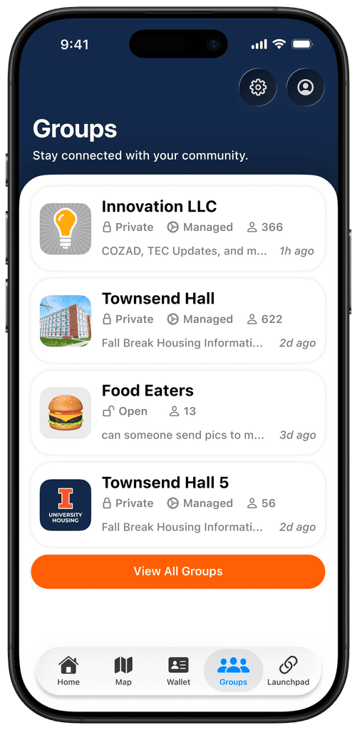 As a first-semester freshman at the University of Illinois Urbana-Champaign, I began to use the university's own in-house mobile app for resources such as dining hall menus, campus maps, and student-based communities.